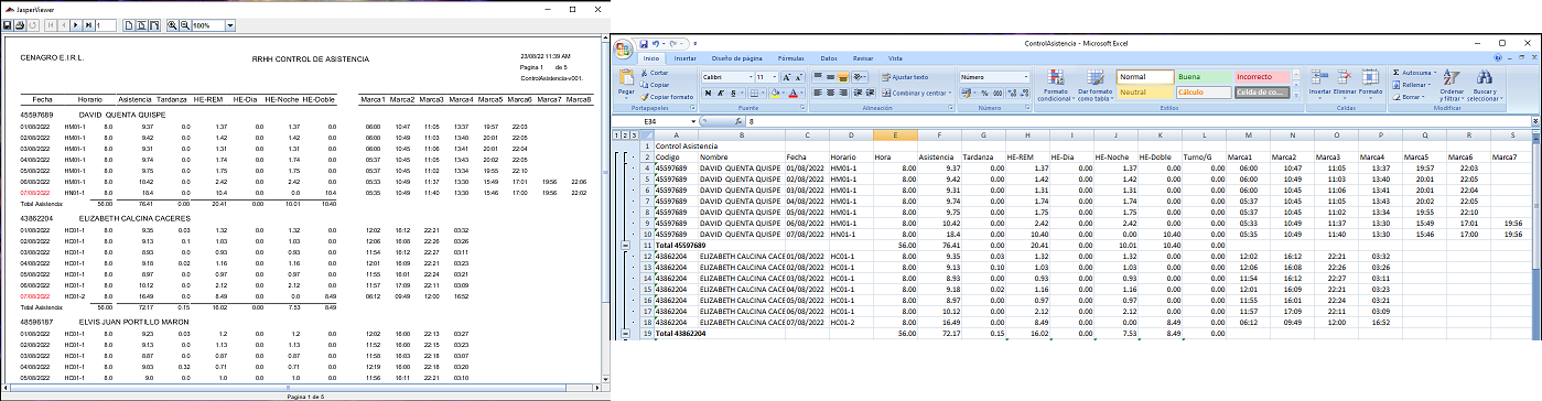- Identificando el horario de asistencia, procesando tardanzas, refrigerios, permisos, faltas y sobre-tiempos autorizados.