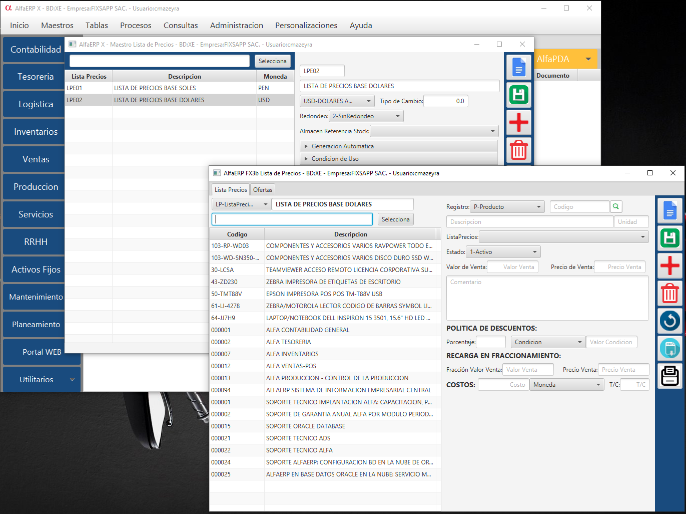 Precio mensual incluye: AlfaERP en servidores Oracle en la nube.